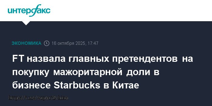 FT определила основных кандидатов на приобретение контрольного пакета акций Starbucks в Китае.